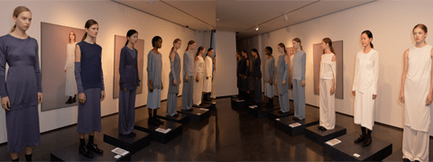 The collection, presented in deliberately limited shades of White, Glass and Sloe, provided a balanced palette that was showcased in single shade looks. Furthermore, the touch and drape of each garment eloquently illustrated the quality and design details John Smedley has honed over their 230 year heritage.