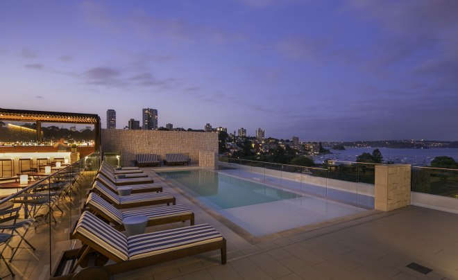 The new space has received a contemporary face-lift by architectural firm Bates Smart, all rooms feature marble bathrooms, while some have views of Sydney Harbour. The Royal Suite has floor-to-ceiling windows and a walk-in wardrobe that can store up to 80 pairs of shoes. The ground floor restaurant, Stockroom, is headed up by chef Julien Pouteau, while the star attraction is the rooftop infinity pool with bar, private cabanas and panoramic views.