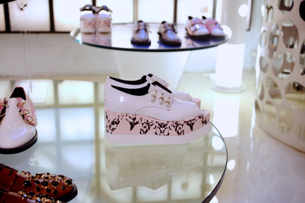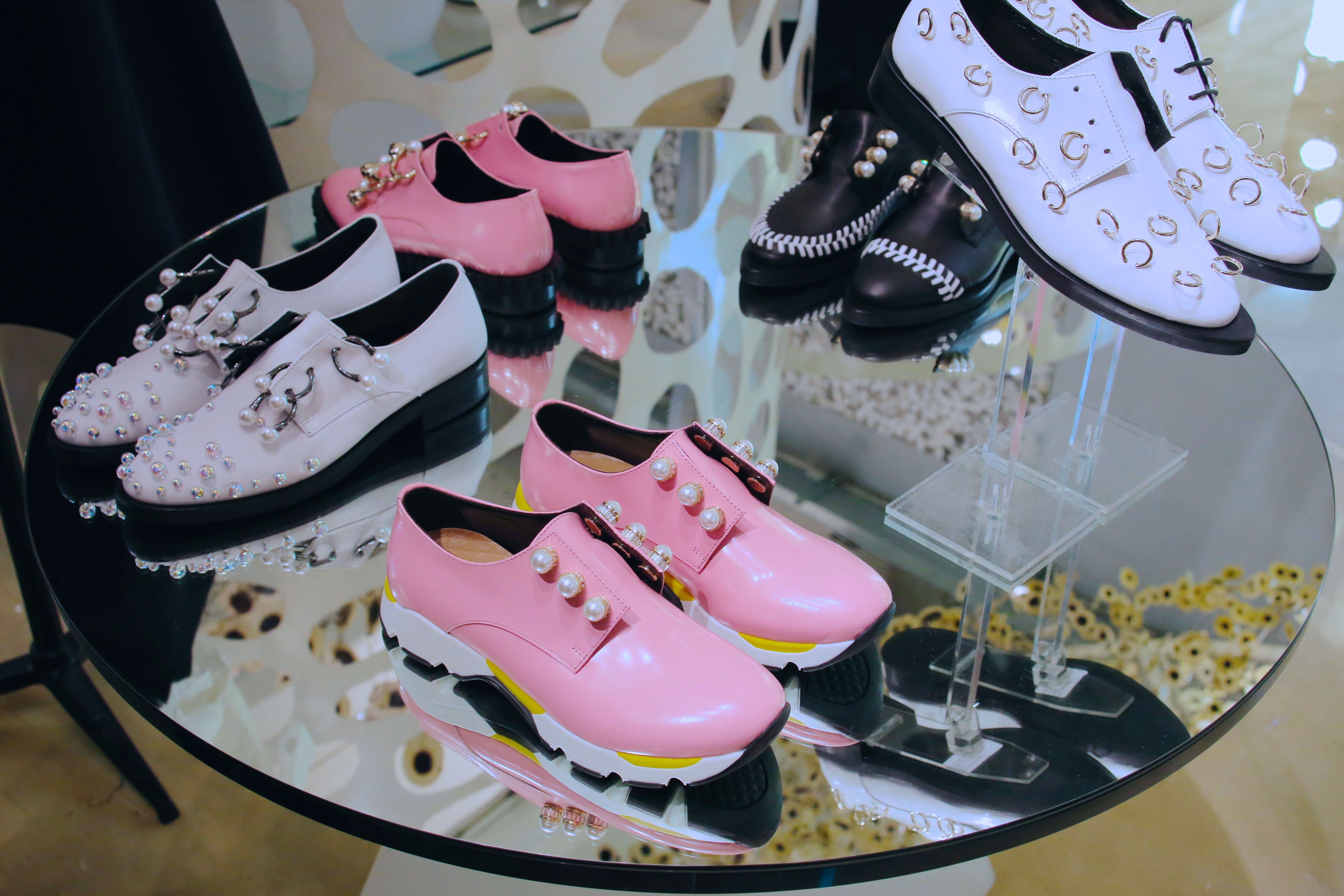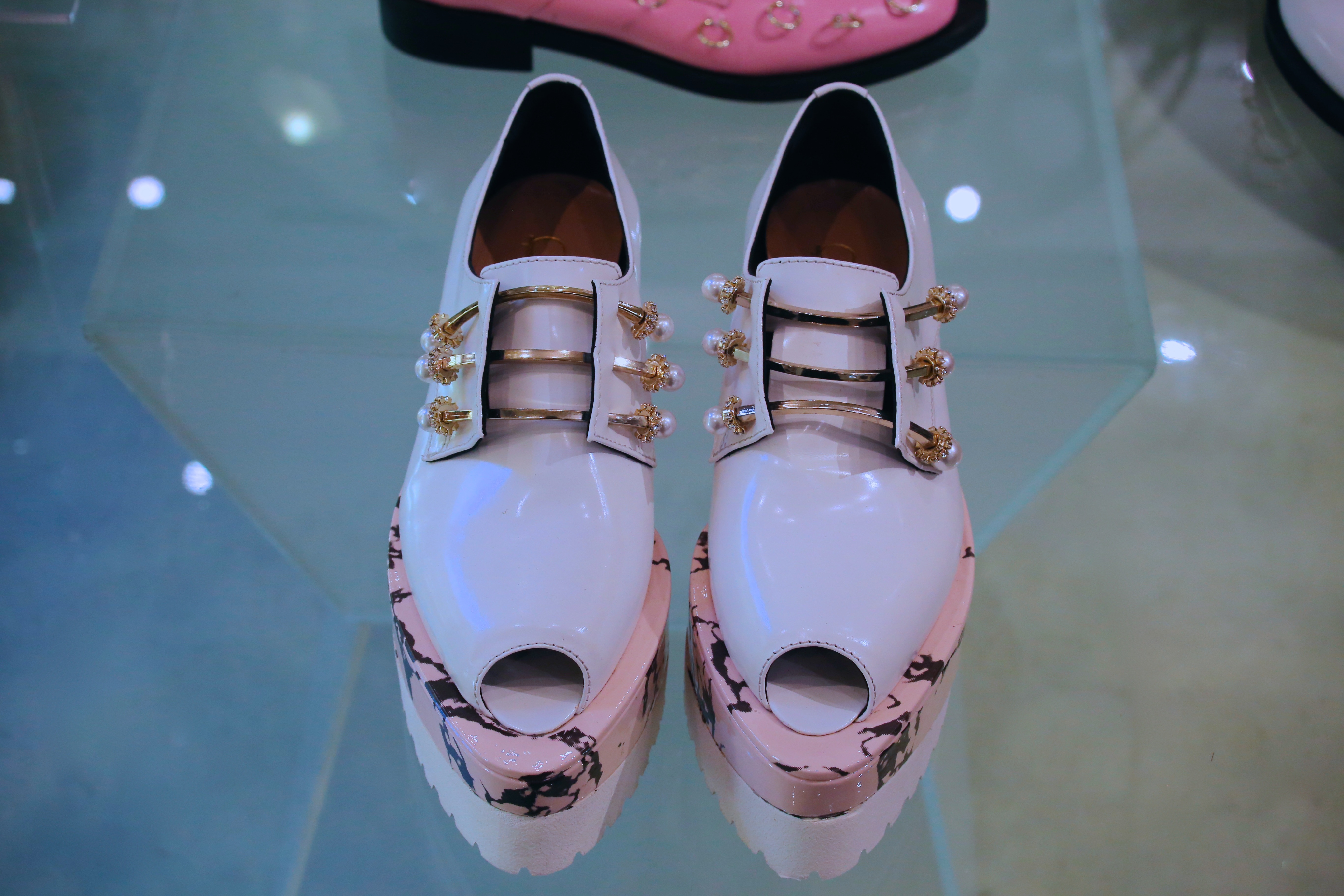 Coliac’s successful experimentation and innovation with the Deby show in particular further grounds it as part of the brand’s heritage. According to the show notes, the Derby shoe is presented in unisex. The decorative approaches this season includes applications of pearls and rhinestones; agglomerations of multiform stones embedded on the tip, and colorful whip-stitching to form a fringe.