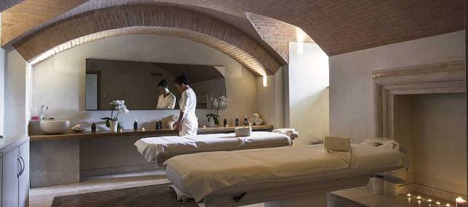 The 16,000 square foot spa & resort features travertine marble, a prestigious material in Tuscany. The spa includes five treatment cabins, two Turkish baths, sauna and ‘emotional shower’ stalls, all are designed to offer sensory delights.
