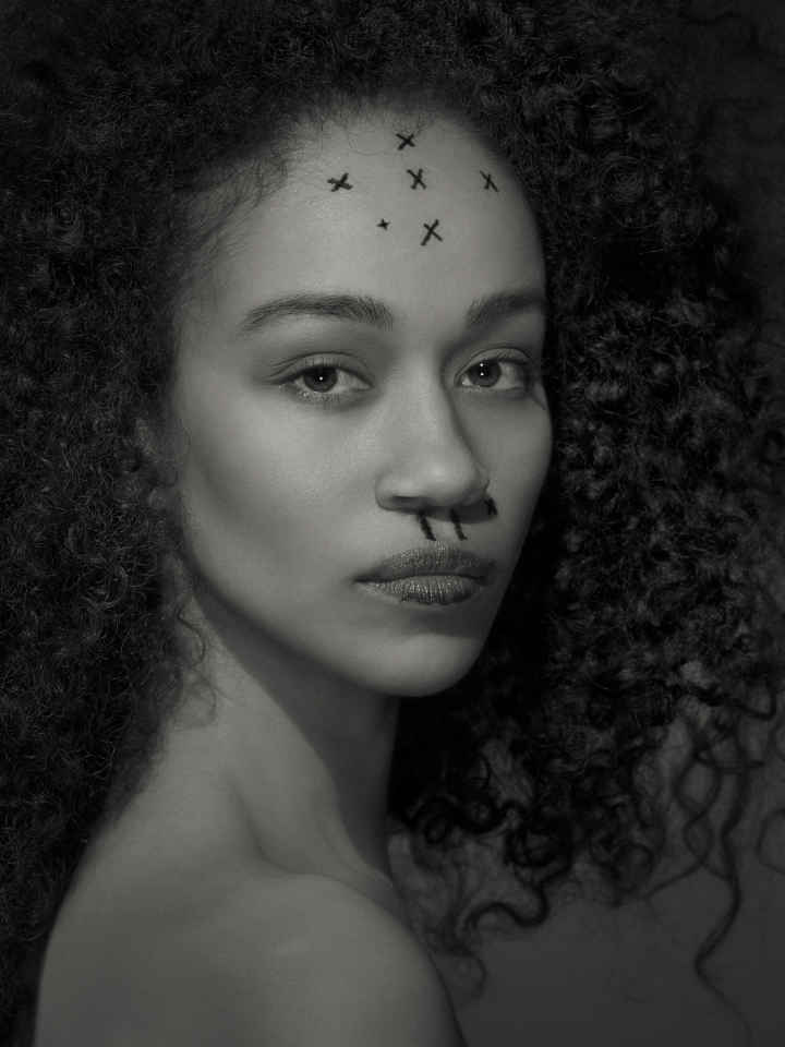 Botox injected into the forehead, to minimize wrinkles. Filler injected into the philtrum and lower lip, to even out asymmetries. Filler injected into the left nasolabial fold and right cheek, to correct depressions.