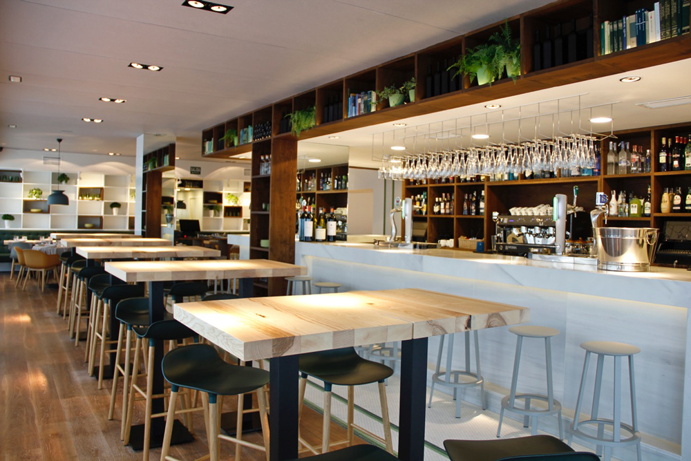 Orgaz is a chic new restaurant in the affluent Conde Orgaz Park in Madrid. Local architecture firm ZooCo Estudio designed the modest space into a modern eatery with warm interiors and vintage style furnishing. The large windows pour in the region’s rays which spread across the open floor plan. Rigid, rigorous lines in warm timbers are tempered by plush surfaces such as overstuffed leather chairs, and the liberal use of floral and herbal arrangements. It is the perfect location to relax with a chilled glass of white Rioja.