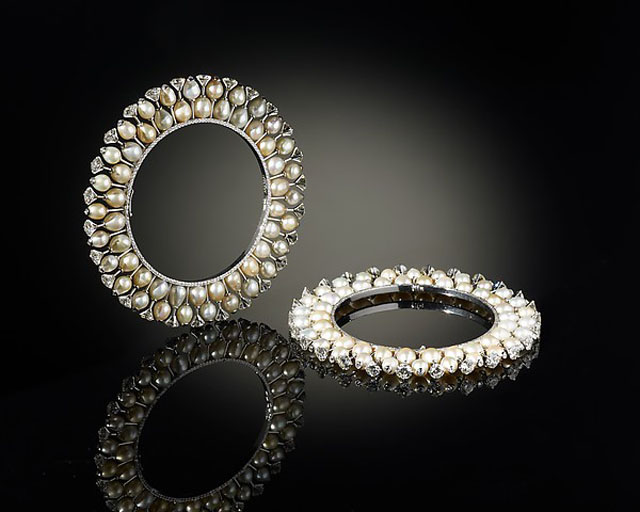 Pair of Bangles (kada) by Bhagat, 2012 Platinum, set with diamonds and pearls; Each: Diam. 3 3/8 in. (8.6 cm)