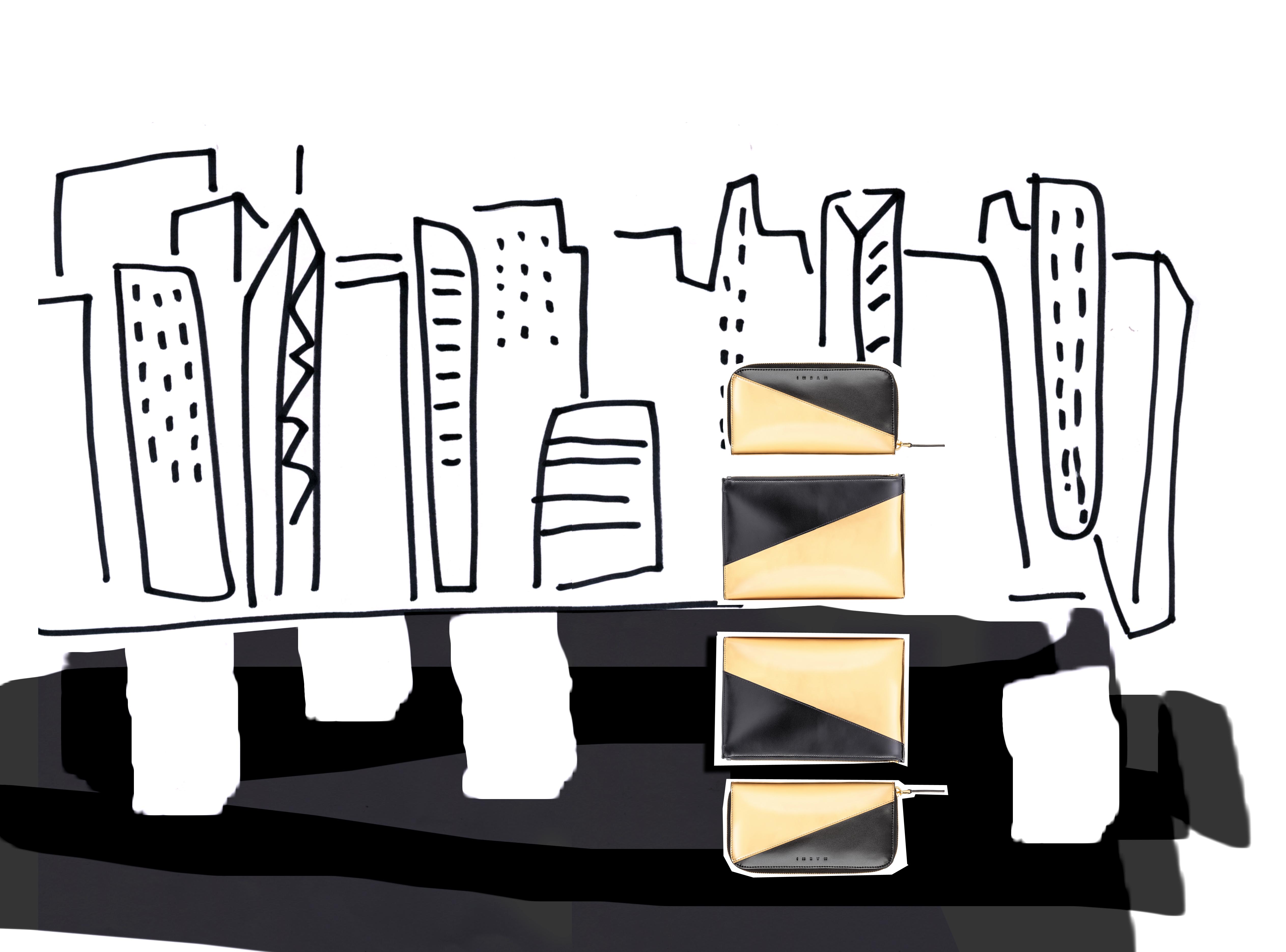 The limited edition holiday shoppers feature smooth and laminated calfskin, in two color combinations, of black and gold, or silver and white. The collection includes a large tote, wristlet, clutch, and coin purse. Bags range in styles from zipper closures to inside pockets, with each bag lined in leather .
