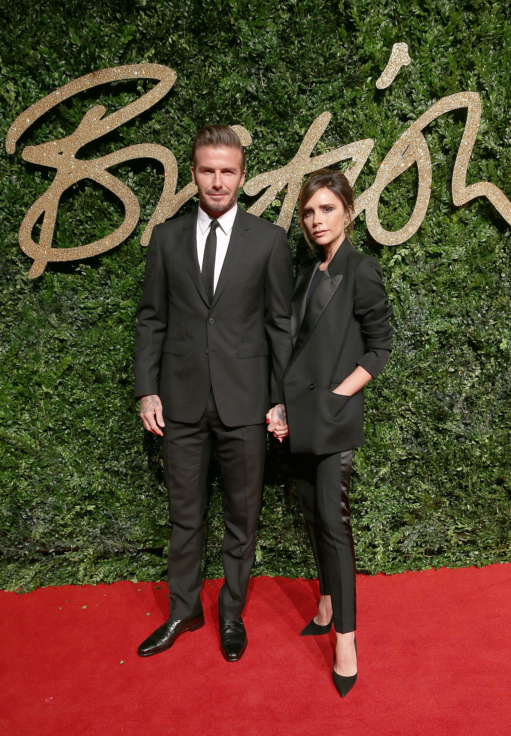 David Beckham and Victoria Beckham attends the British Fashion Awards 2015 at London Coliseum on November 23, 2015 in London, England.