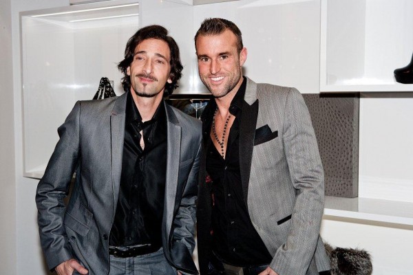 Adrien Brody at the Dusseldorf store opening, with the desginer, dressed in Philipp Plein