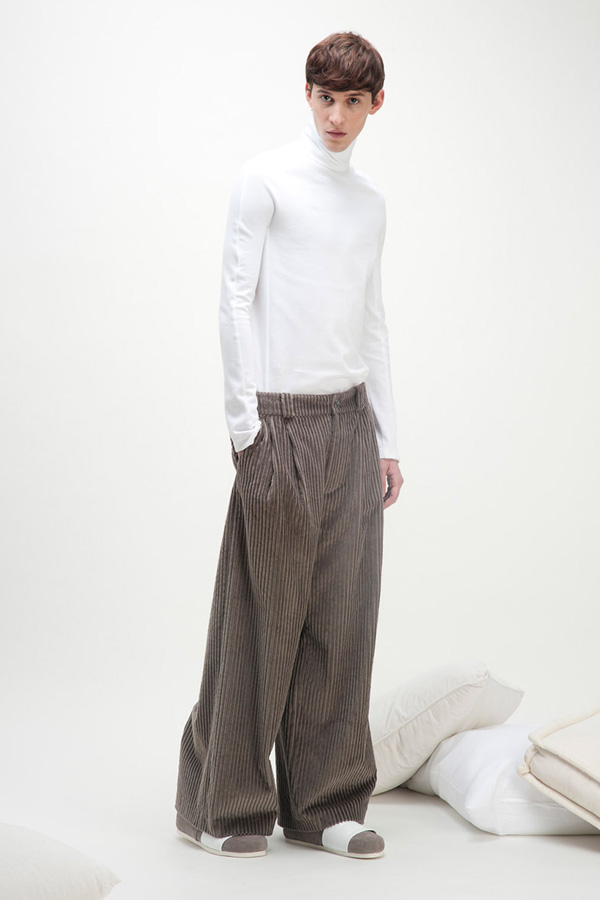 Lucio Vanotti is a graduate of the Istituto Marangoni in Milan. His collections tend to lean towards simplicity in color and design, with a focus on luxe textiles and enveloping silhouettes. This concept results in abstract shapes and purity in form freeing the need for unnecessary embellishments.