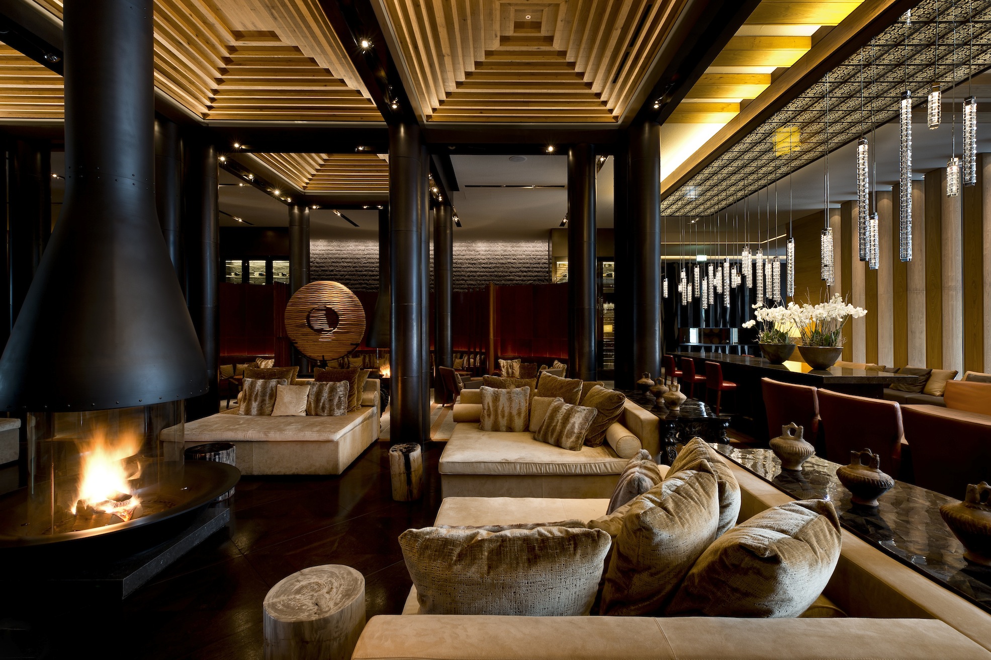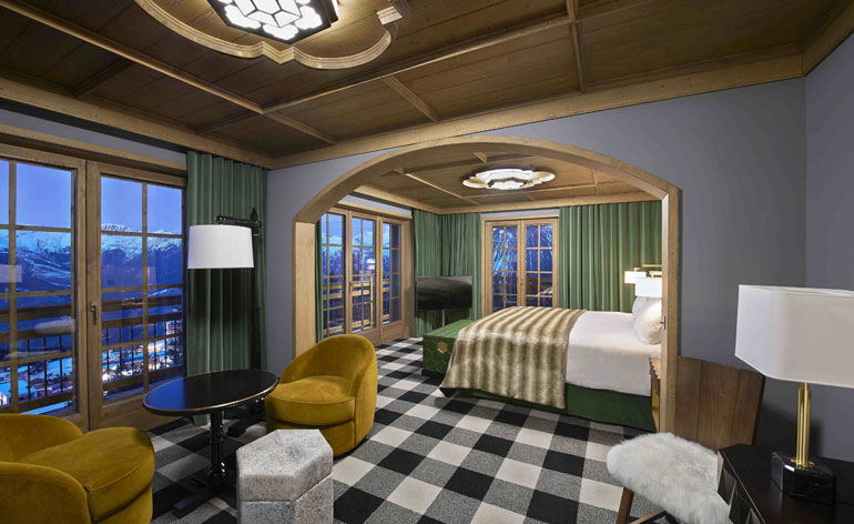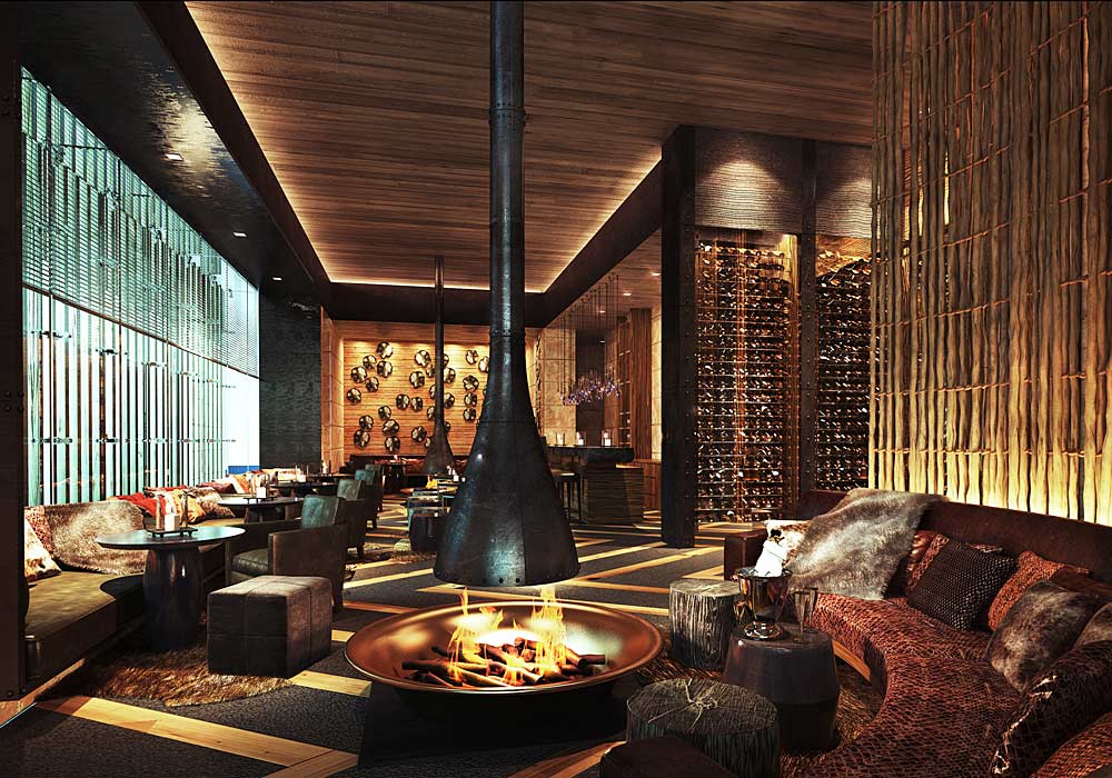 The latest W Verbier ski resort opened in 2014 offers an off-the-beaten-track hospitality experience. Concrete Architectural Associates designed the four wood-clad chalet-style buildings containing 123 guest rooms each with its own fireplace designed with local materials in wood and red tinted glass. The resort features an urban style black leather Carve bar with a mirrored ceiling. The spa, the largest in Verbier, has an indoor-outdoor pool. Michelin-starred chef Sergi Arola headlines the resort’s Arola Restaurant which offers his famous ‘pica pica’ sharing plates specially designed with a Swiss slant.