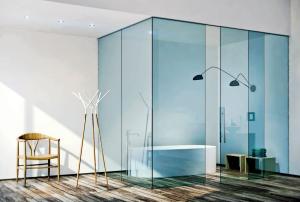 The Henry Glass is a luxury door option. The fixed partitions and sliding doors are made of a tempered safety glass. The effect is the feeling of a room within a room. henryglass.it