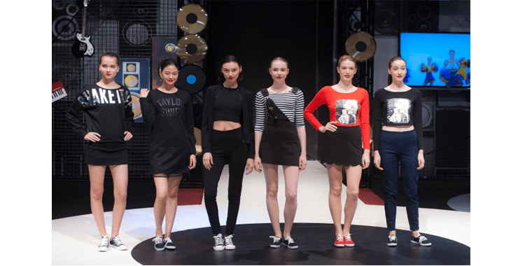 The singer herself did not make the journey east but her newly launched clothing line for the Chinese market staged a small runway show amid the booths of garment manufacturers.