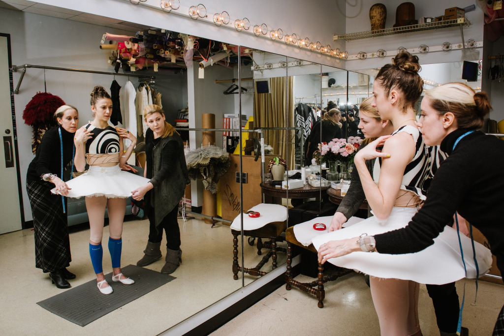 Corps de ballet dancer Gretchen Smith is fitted for her costume as one of the ballet’s nine muses.