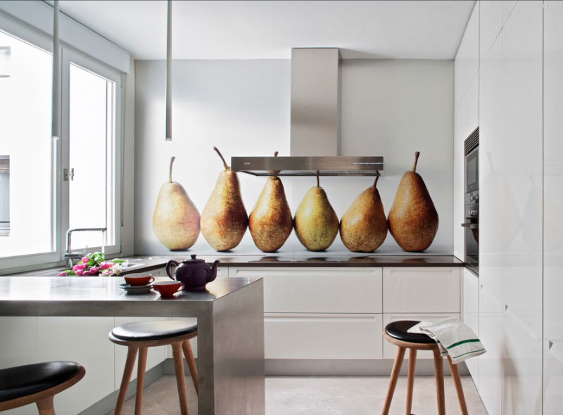 This small kitchen’s table is wall mounted to be easily and securely stored away or dropped down for dining.