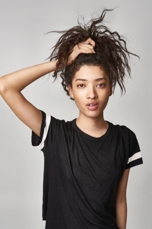 Mesmerizing new face Aqua Parios, of African-American and Japanese heritage, grew up in Las Vegas before relocating to Phoenix, where she was discovered while shopping after cheerleading practice.