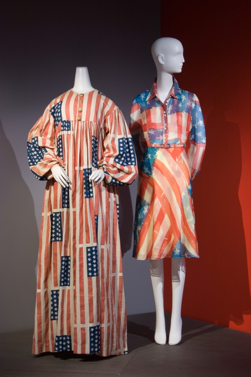 Fashion history sidenote: wearing American flags was not always a celebrated practice. In 1968, social activist and anarchist Abbie Hoffman was arrested for wearing a t-shirt emblazoned with the flag’s stars and stripes.