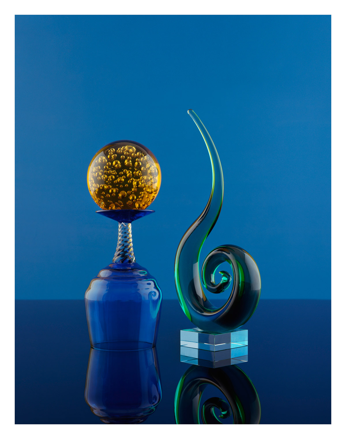 “I was thinking firstly about the history of early Olympic posters. Also I wanted to use colours chosen for the Rio emblem to represent Brazil; blue, yellow, green. The green glass object is a spiral. The spiral as a motif often represents energy in a number of cultures. The yellow sphere contains many other smaller yellow spheres, which made me think about aspiration and the constant effort and dedication required to achieve Olympic standards. It’s elevated on an upturned glass, hovering. Upheld. The objects are set against a blue backdrop, contained as if in a cabinet; preserved like a trophy. There’s a history of the Olympics being documented, drawn, pictured. It’s important to continue this; to celebrate achievement and a coming together and to reflect on such through artistic projects.”
