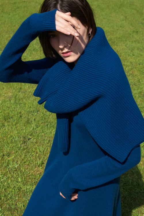 Expect to find 50 women’s and 34 men’s items in total, including knits, outerwear, dresses, and jackets. Some mainstays of Lemaire’s earlier Uniqlo collabs make an appearance in this full-blown line, like cozy-looking cashmere sweaters, dresses, and long cardigans. New this time around are down coats,padded jogger pants, and padded mittens. Prices range from $15 to $180.