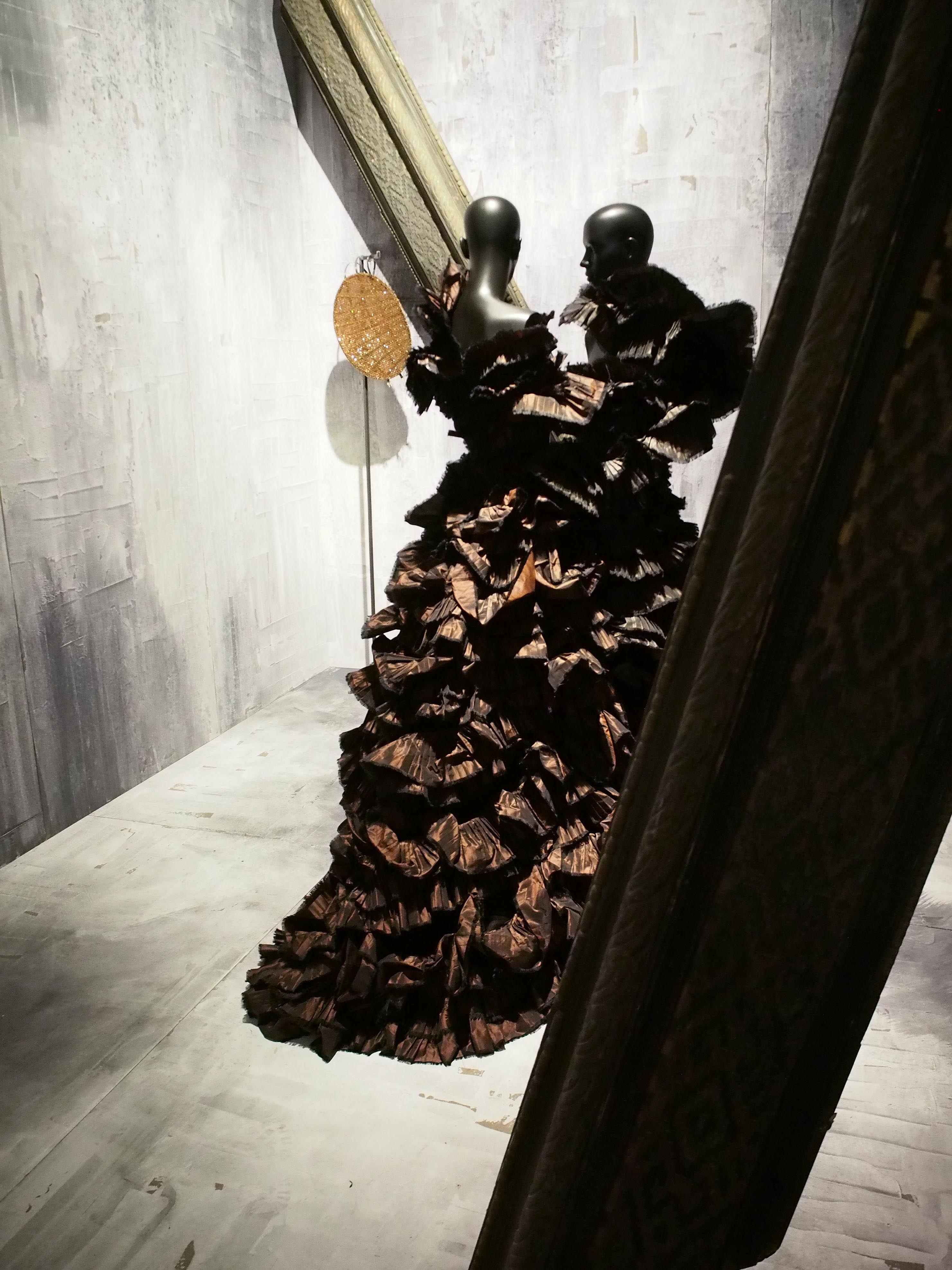 The exhibition highlights details of costume history which Ferré revisited in fashion form. That’s the focus of the sixty gorgeous creations on display, complete with relative preparatory sketches. Striking an at once emotional and philological note, the itinerary follows a path across distinct spaces to tell a story that circumvents a strictly timeline-oriented approach to center very much on the protagonist of Marie Louise.