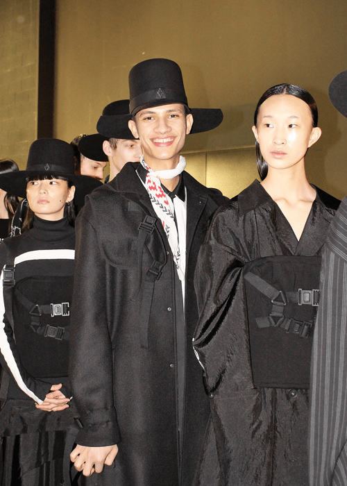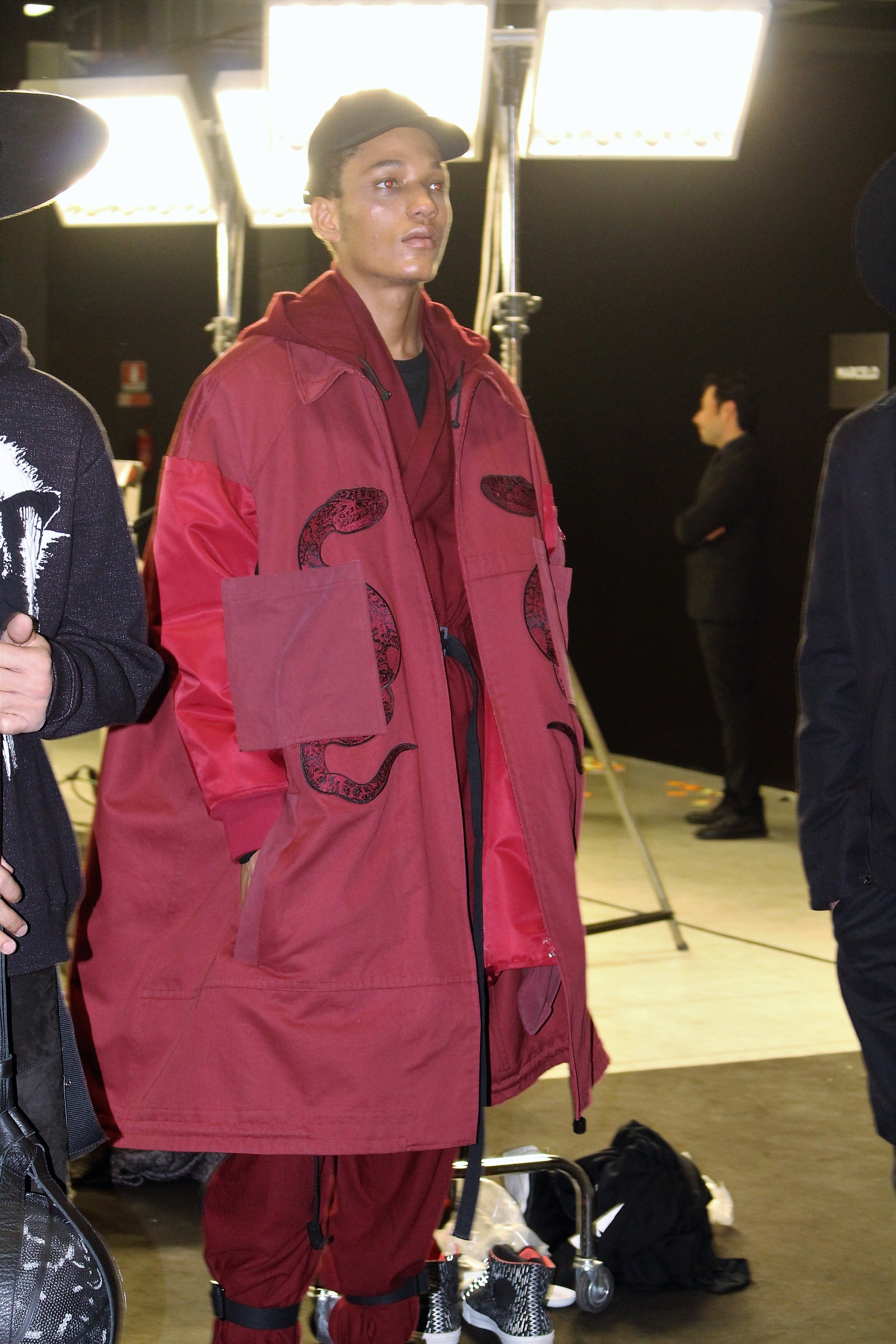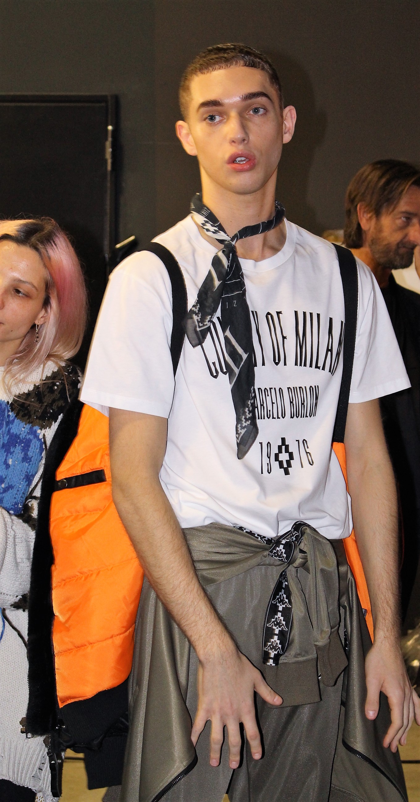 In total, Marcelo Burlon’s collection was a mash up of extreme proportions and bold silhouettes with strict tailoring. The collection was tribal, militaristic, and essentially the new look of menswear today.