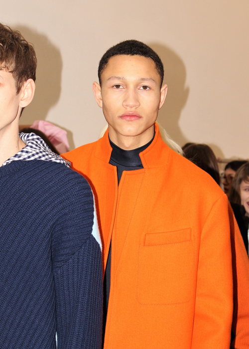 Model backstage at the Cedric Charlier Fall 2017 menswear show ©The Fashion Plate 2017 (photo by Lola Montanaro)