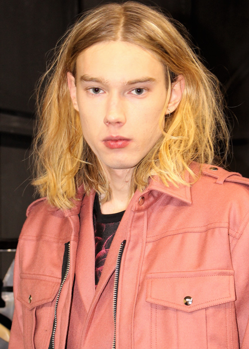Model backstage at the Christian Pelizzari Fall 2017 Menswear show ©The Fashion Plate 2017 (Photo by Lola Montanaro)