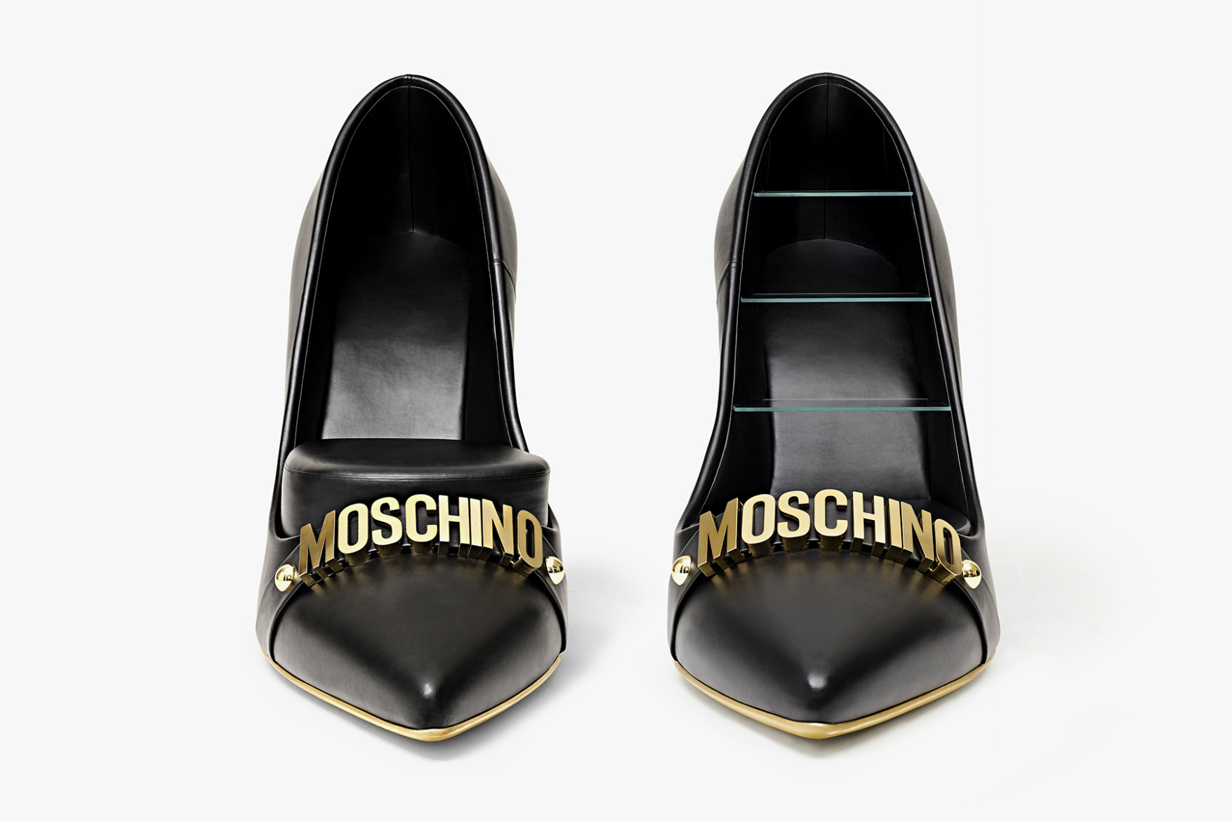 Moschino Heels Ottoman and bookshelf, Moschino Kisses Gufram capsule collection ©Moschino