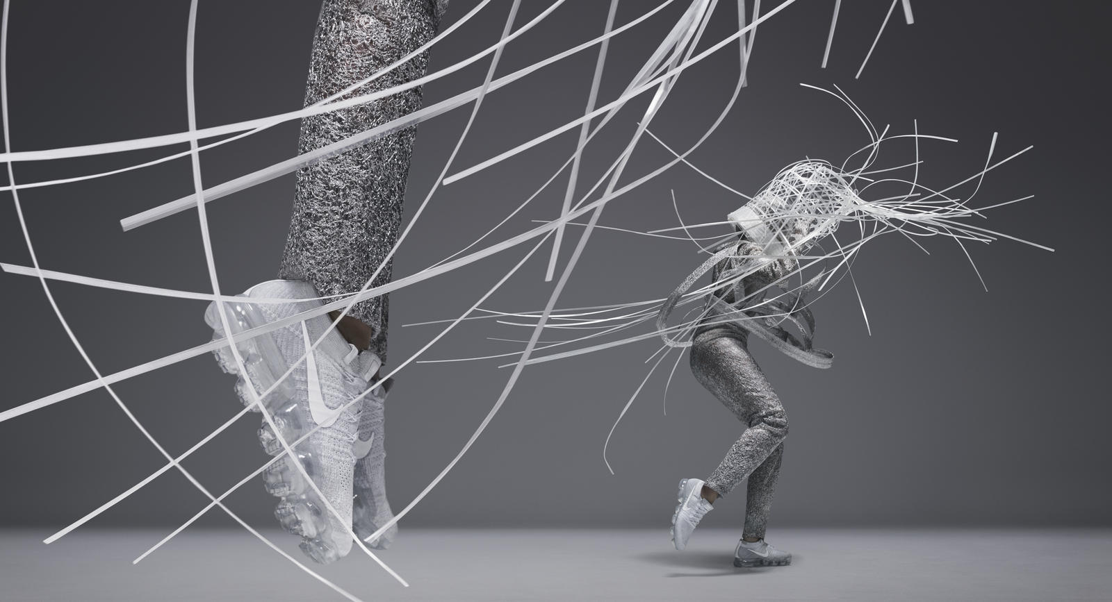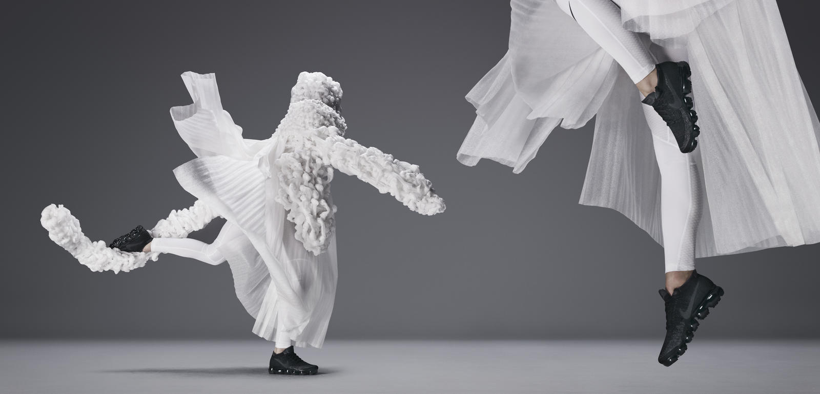 Our thoughts: Visually it may seem hard, but touching the VaporMax gives a completely different feeling. The dress looks like a solid sculpture but it is, in fact, very light and flexible, allowing the body to easily move with the garment.