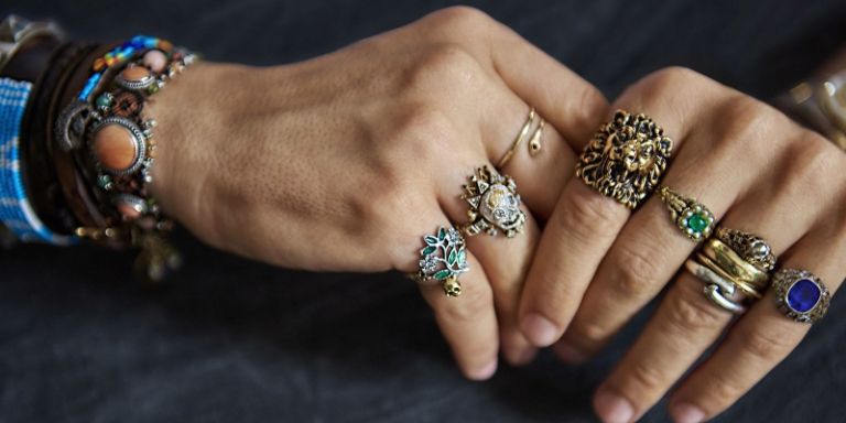 The rainbow-colored, crystal-studded lineup of contemporary jewelry- palm cuffs, bracelets, earrings and necklaces, are more closely related to the style of the creative director himself as Michele is often seen wearing stacks of jewelry on his fingers.
