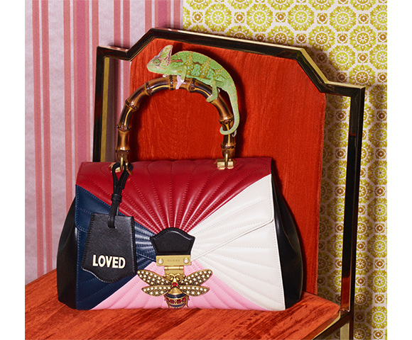 Gucci handbags have transitioned from the flat, house canvas featuring the signature Gucci motif to more lux components of precious skins embroidered, quilted and ruched into 3-dimensional design shapes. Don’t worry, the emblematic “GG” insignia is always present.