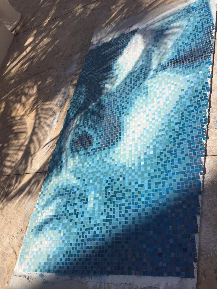 Outside the bright blue of mosaic tiles draw the eye to the colorful swimming pool shaped in one of Karim Rashid’s trademark fluid curves. The pool is landscaped with sunbathing decks ideally arranged for daytime lounging.