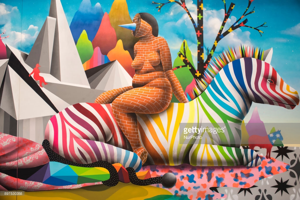 The Palacete del Embarcadero in Santander, Spain hosts Cantabrian artist Okuda San Miguel in a solo exhibition titled Palace of the holy animals. The installations of large and small scale on public display inside and outside the port space are curated as an homage to the roots of artist. Okuda began as a graffiti artist in Santander, his hometown, and over the years his work has evolved into a new and unique style critics are calling Pop Surrealism.