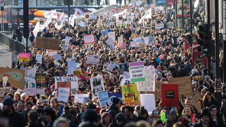 Demonstrators surged into the streets in protests in American cities across the country, with parallel rallies in Europe, Asia and Africa turning the event into a global affair. Los Angeles Mayor Eric Garcetti wrote on Twitter that 600,000 people turned out for its rally. According to local media reports, organizers said some 300,000 people attended the rally in Chicago. New York City Mayor Bill de Blasio’s office said 120,00 people attended a protest there.