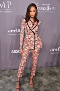 Joan Smalls in Dolce & Gabbana and Alexandre Birman shoes