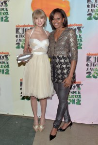 Former first lady Michelle Obama, in Wes Gordon, with Taylor Swift at the Nickelodeon 25th Annual Kids’ Choice Awards.