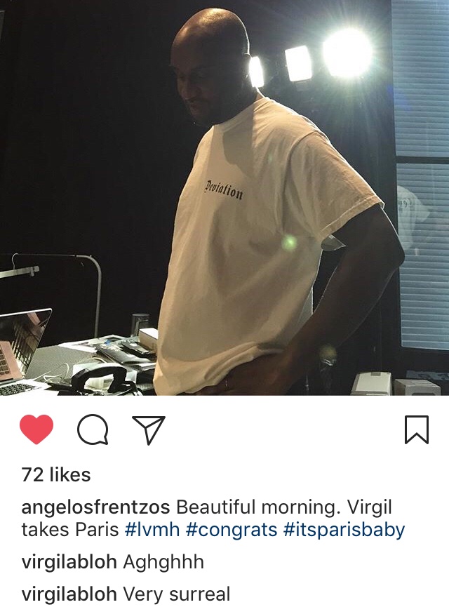 When Angelos Frentzos congratulated him this morning on his new gig as designer of one of the oldest and most powerful European luxury brands in history Virgil Abloh realistically responded with, “Aghghhh. Verry surreal”.