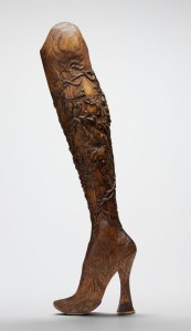 Bob Watts and Paul Ferguson’s prosethic leg for Alexander McQueen. Carved ash wood. (1999)