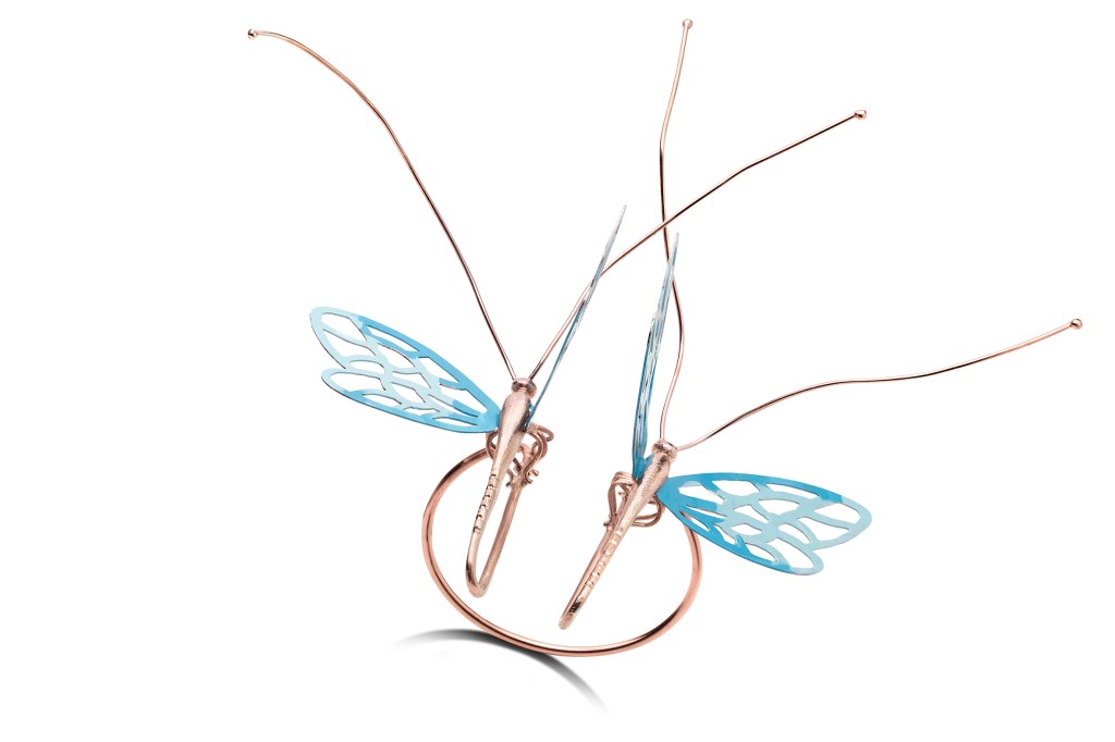 If you love little critters, butterflies, dragonflies, and buzzing bees we have the perfect jewelry maker for you. Futuro Remoto is a dynamic new high quality, hand-made haute jewelery project known for their esoteric designs. Their new fall 2018 collection features falene-inspired baubles that are slightly subversive in a creepy-crawly house of curiosities sort of fashion.