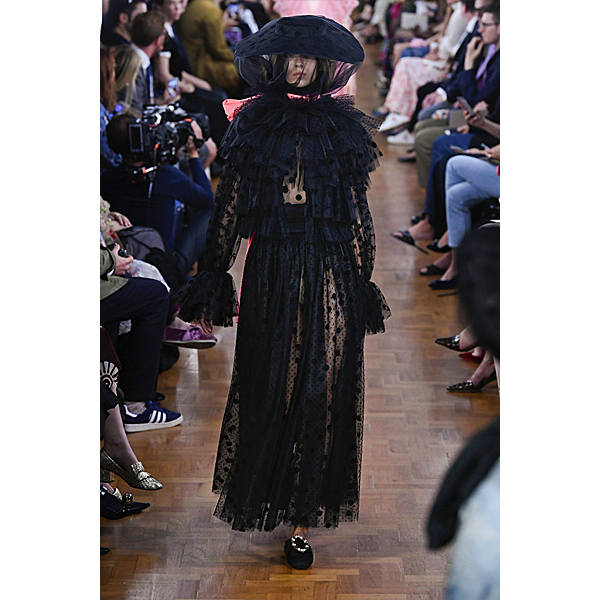 A presentation of mystery and maturity, the show had many of the models wearing circular hats engulfed in sheer lace, keeping many faces anonymous.