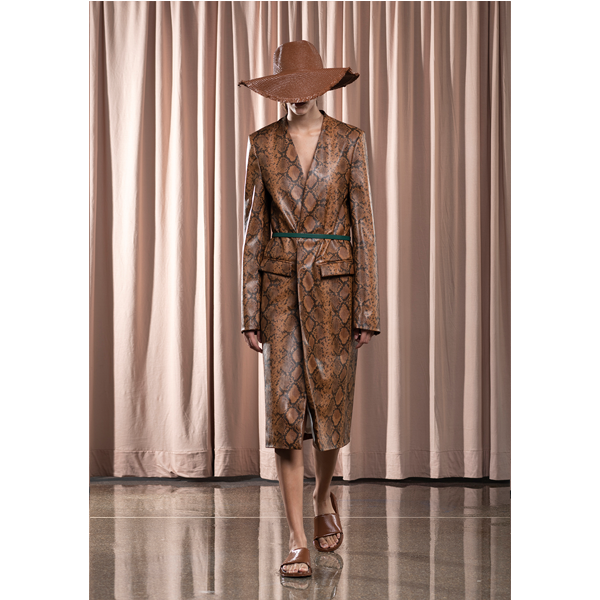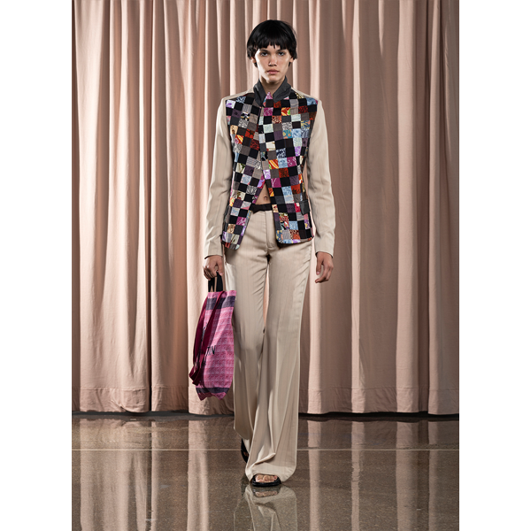 But not all of the patchwork designs the same. Frentzos applied a more subtle digital patchwork detail on blouses, jackets, dresses and trousers. These looks would be perfect for work.