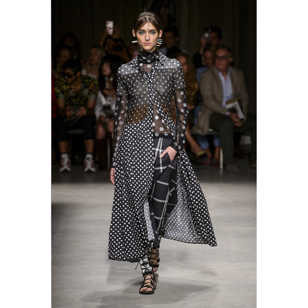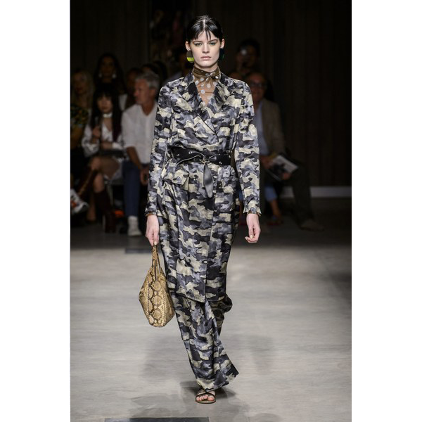 For this collection Miriam and Piero Cividini cross the lines between exotic and urbane fashion; implementing frequent uses of camouflage and polka dots, as well as dashes of plaid and a chain link print.