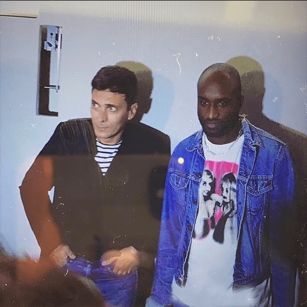 A rare photo of Celine’s creative director Hedi Slimane and Louis Vuitton’s creative director Virgil Abloh.