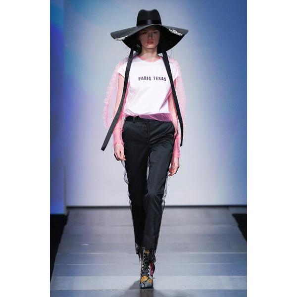 Although the location was Milan’s Palazzo Mezzanotte, from the clothes which flowed down the runway during Frankie Morello’s Fall 2019 fashion show, we could’ve found ourselves in a dystopian western film. Combining the sleek glamour reminiscent to Parisian nightlife with the bold flashiness of classic Texan fashion, designers Maurizio Modica and Pierfrancesco Gigliotti put their own contemporary spin on a look that’s stayed in fashion since Hedi Slimane’s takeover at YSL.