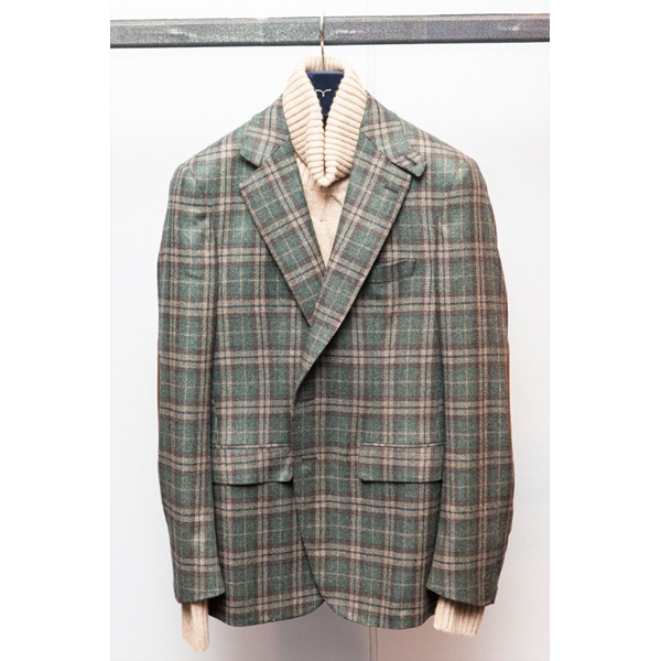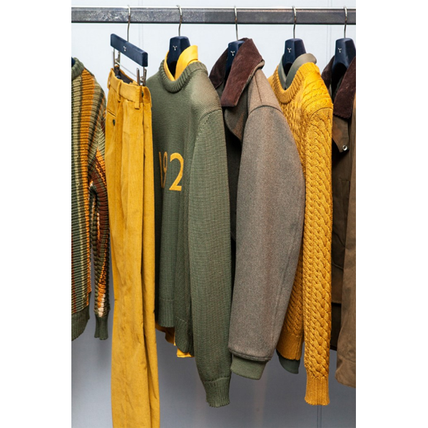 Notable materials include a silky sea cashmere corduroy as seen on the trucker-style work jackets and a furry mohair that appears on a tasty plaid overcoat.