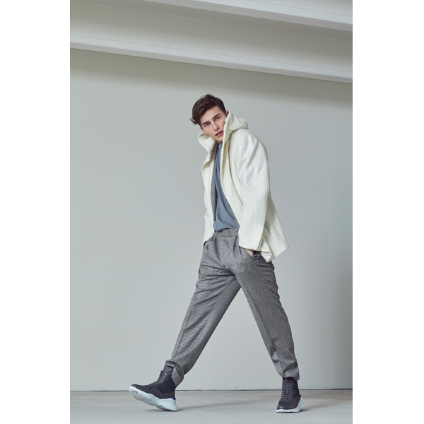 The fabrics are cashmere, silk, and linen which give the garments a luxury feel and satisfies the new generation’s sustainability expectations. However the relaxed fit trouser is not modern in its aesthetic. For example, the elastic-waist coupled with the wide fit, while functional for a mature client, is not youthful.