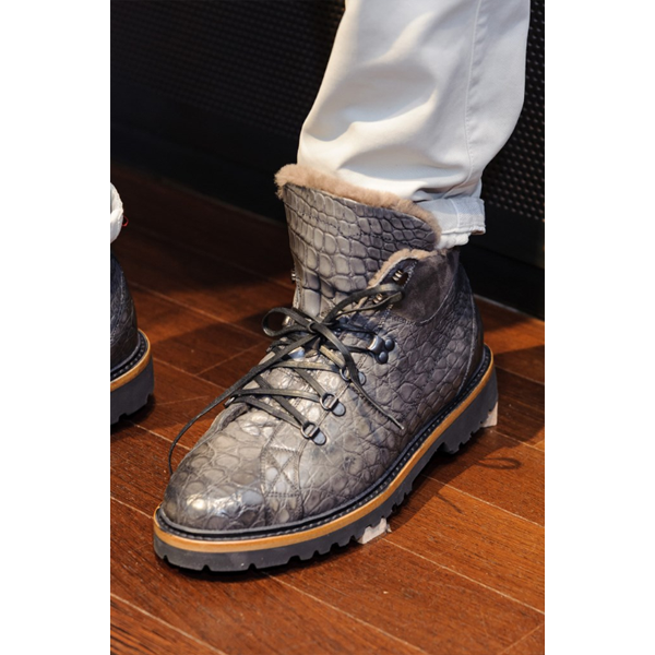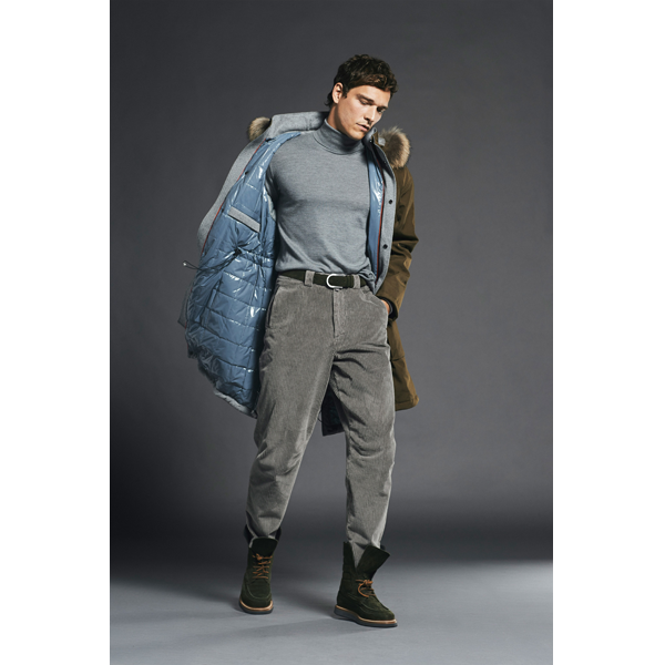 Kiton also introduced an Alpine/Ski collection with a cashmere coat lined in weasel, nutria or mink combined with a double-face garment with extractable fleece lining. The primary fabric of the Alpine collection is cashmere, its designed in classic and historical style pieces like hooded jackets, denim and baseball inspired jackets and the classic blazer.