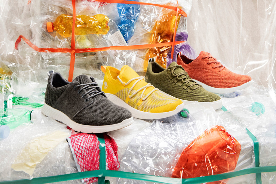 Timberland’s new upcycled footwear designed with a recycled plastic bottle textile. (photo: courtesy FuoriSalone)