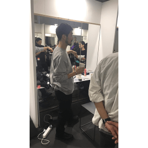 Designer Shinpei Yamagishi with his team moments before the Bed J.W. Ford fashion show. (photo: QC Humphrey)