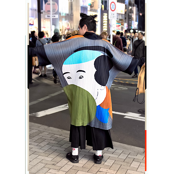 Street style: A student wearing the Ikko Tanaka x Issey Miyake collection. (photo: Tokyo Fashion, 2017)