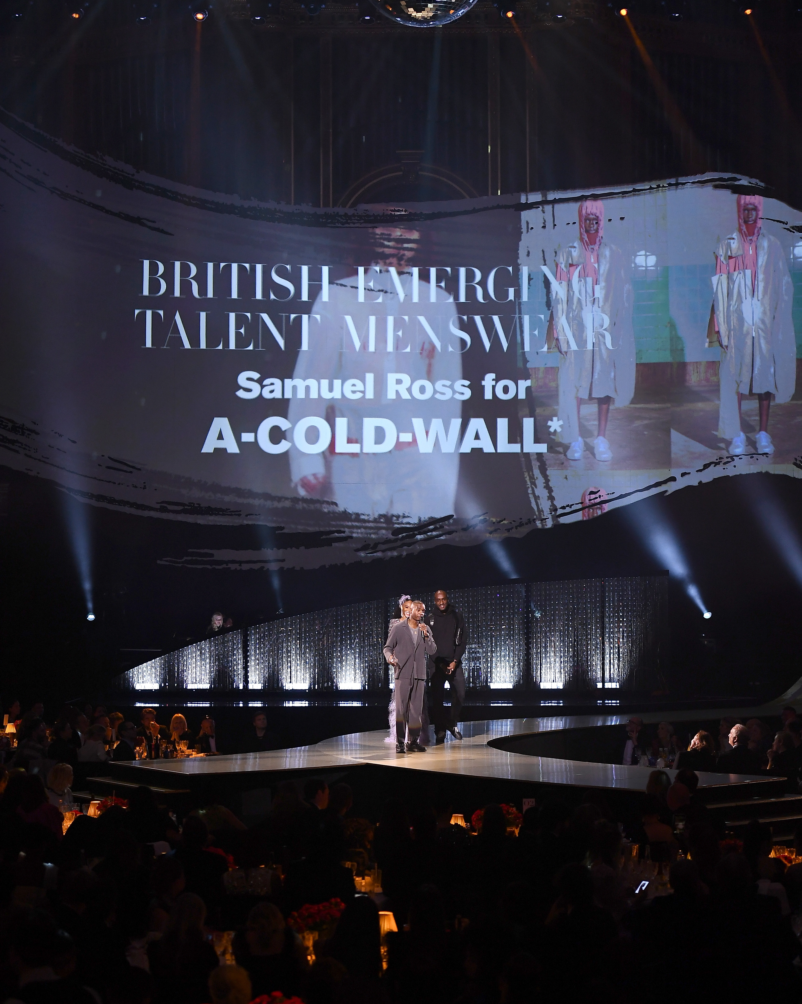 Designer Samuel Ross of A Cold Wall* accepts the British Emerging Talent Menswear award at The British Fashion Awards (2018).