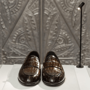 Santoni Fall/ Winter 2019-20 shoes up for “auction” during Milan Fashion Week (photo: IMAXTREE.COM)